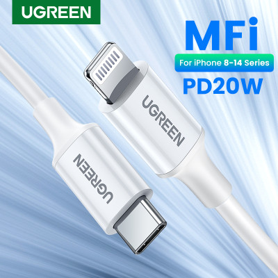 اشحن أجهزتك بسرعة مع UGREEN USB-C إلى Lightning 20 واط PD، يوفر شحن سريع وآمن لهواتف iPhone 14 / 13 Pro Max وiPad، تصميم مضفر متين مع نقل بيانات عالي الأداء.